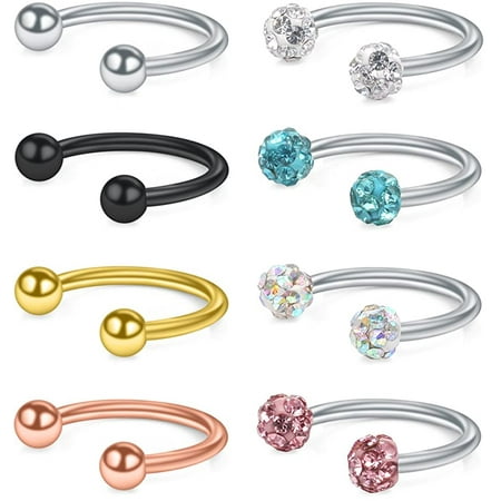 8pcs 20g Crystal Ferido Shiny Ball Tiny Nose Septum Horseshoe Earring Eyebrow Lip Helix Tus Cartilage Piercing Ring 8 10mm Walmart Canada